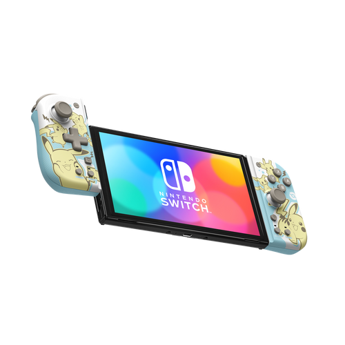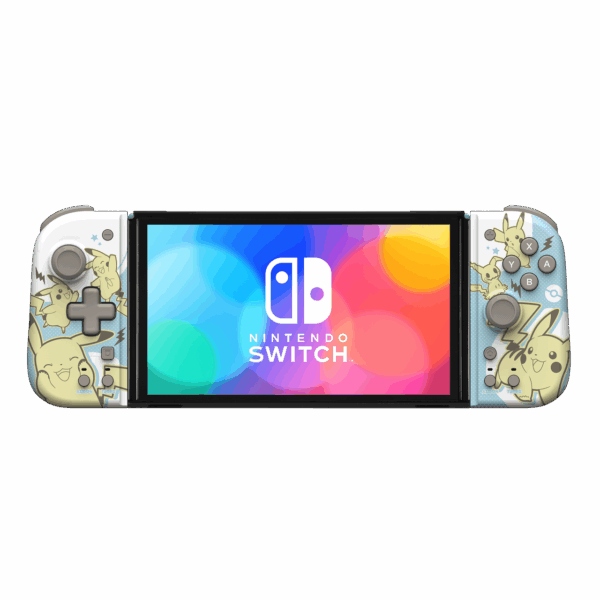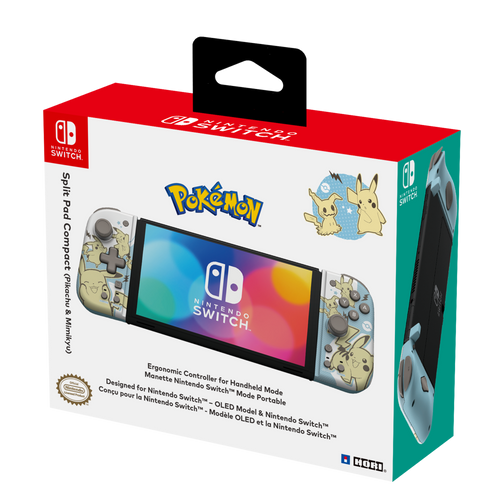 Introducing the newest member of the HORI Split Pad family - The Split Pad Compact (Pikachu & Mimikyu)! The Split Pad Compact provides a pro controller-like experience in Handheld Mode. Featuring comfortable and easy-to-use analog sticks, D-pad, and shoulder buttons. Advanced features include assignable rear triggers, Turbo functionality, and more. Great for a wide range of Nintendo Switch™ titles. The Split Pad Compact's ergonomic design fits your hands perfectly for increased comfort and control. Enjoy a new gaming experience with the Split Pad Compact! (Does not include Motion Controls, HD Rumble, NFC, or IR camera.) Officially Licensed by Nintendo & Pokémon